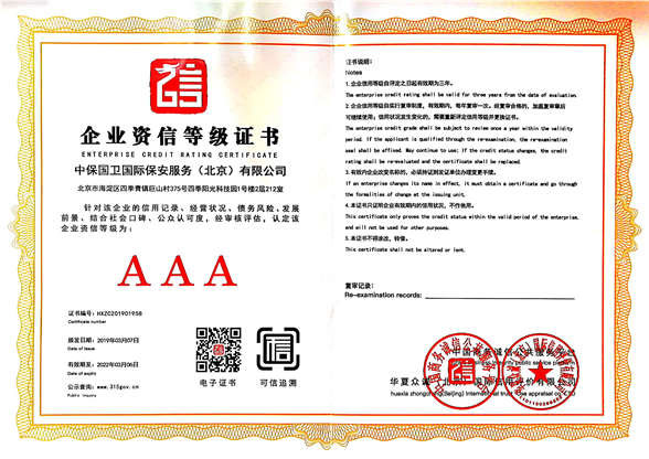 中保國衛(wèi)國際保安服務(wù)(北京)有限公司,屬中保國衛(wèi)集團(tuán)旗下子公司。能全方位的為大型客戶提供優(yōu)質(zhì)的安保、押運服務(wù),是集人防和技防于一體的新型正規(guī)化綜合安保押運服務(wù)企業(yè),提供人防、物防、技防、聯(lián)網(wǎng)報*、非武裝押運等安防相關(guān)的一站式服務(wù)。 公司在國內(nèi)多省設(shè)立有分公司及分支機構(gòu),著重提升安全押運、智能技術(shù)押運及安全技術(shù)防范相關(guān)的服務(wù),業(yè)務(wù)范圍覆蓋全國一、二線城市、港澳地區(qū)以及海外地區(qū)。安保方面主要為政府機構(gòu)、金融機構(gòu)、企事業(yè)單位、醫(yī)療衛(wèi)生、高等院校、工業(yè)園區(qū)、大型商場、高檔住宅、智能商務(wù)樓、大型活動提供門衛(wèi)、守護(hù)、巡邏、押運(非武裝)、安全檢查、保安特勤、私人護(hù)衛(wèi)、消防中控、安全技術(shù)防范、遠(yuǎn)洋護(hù)航等全方位服務(wù),同時面向國際市場,為中資企業(yè)在“一帶一路”沿線國家投資提供境外安保服務(wù)。 >> 更多內(nèi)容 |